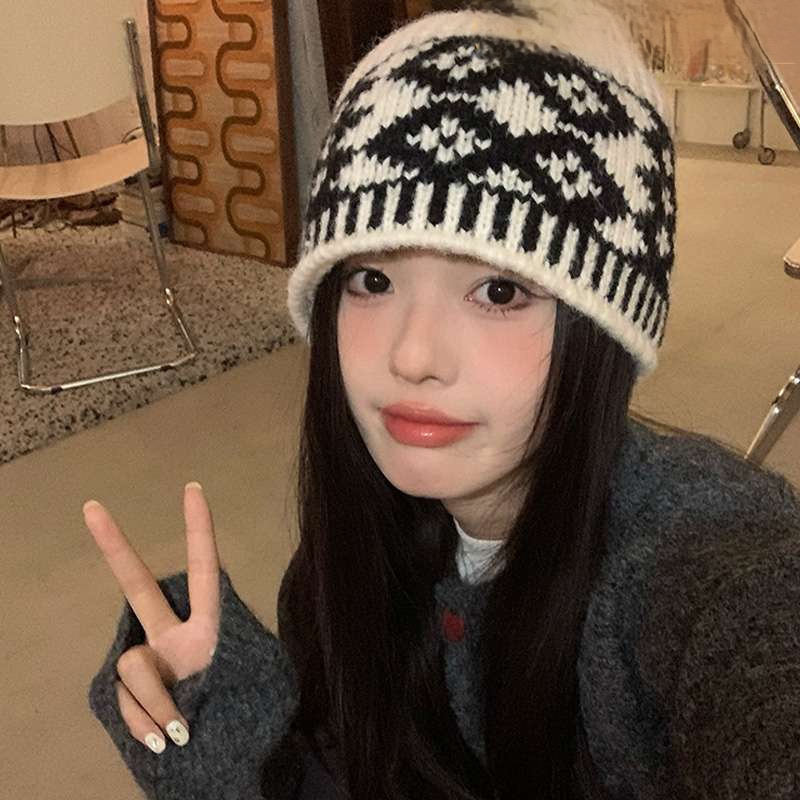 秋の韓国コーデのアクセントになるノルディック柄ニット帽