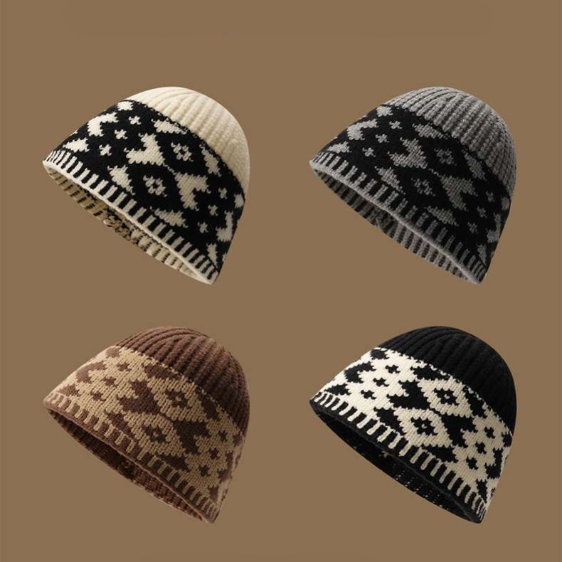 韓国ファッション風の伝統的な北欧模様をモチーフにしたニット帽。