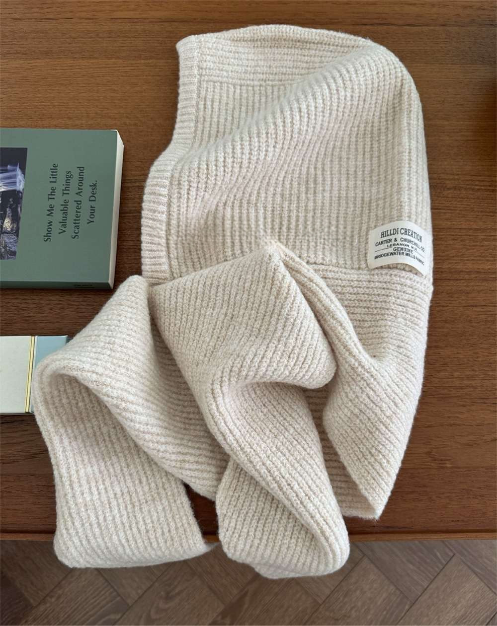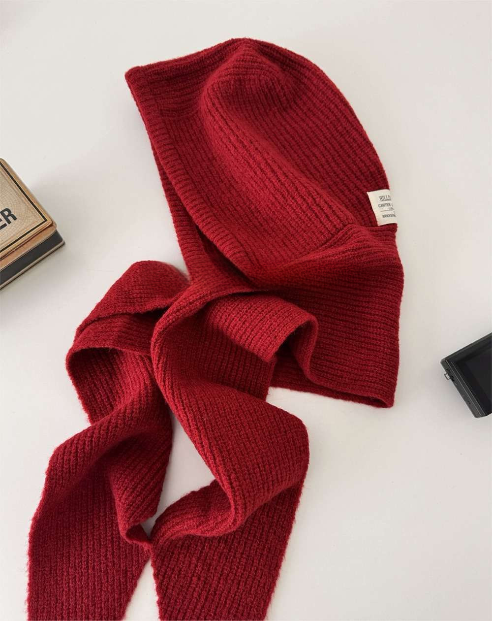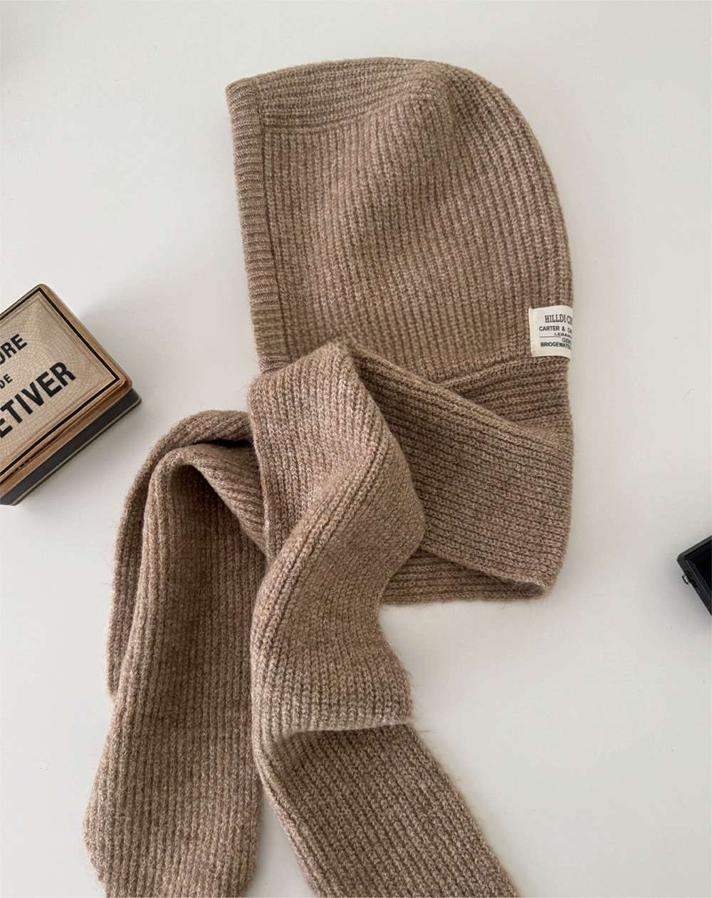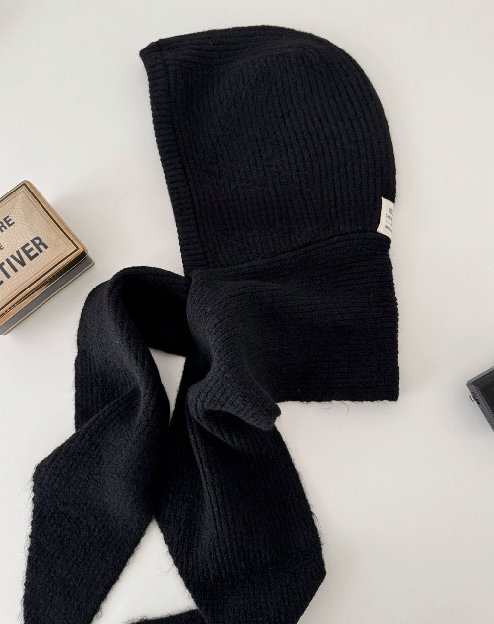 韓国ファッション発の一体型ニット帽マフラー。